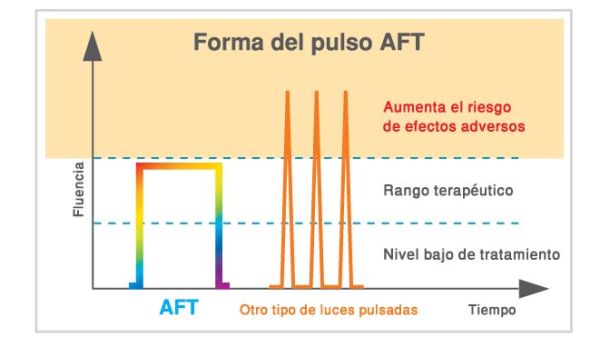 O método de fotoepilação AFT é baseado na tecnologia In-Motion exclusiva desenvolvida e patenteada pela Alma Lasers. Uma técnica de movimento que consiste em mover o punho e emitir energia continuamente sobre a área de tratamento, usando fluências baixas, pulsos de repetição rápida e atingindo a potência máxima em cada sessão.