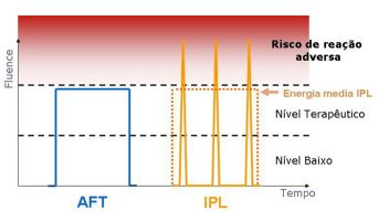 Para gerar um pulso longo, a tecnologia IPL gera vários pulsos curtos de pico alto de energia. A energia média destes pulsos é a energia desejada para o tratamento. Porém, estes picos altos ultrapassam o nível terapêutico e podem causar reacções adversas. O AFT utiliza a tecnologia CWTM (Constant Wave) fornecendo um pulso constante de energia na faixa terapêutica.