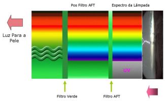 A tecnologia AFT emprega dois filtros: o primeiro transforma a luz UV para a luz na faixa desejada (neste caso, verde) e um segundo filtro deixa passar o comprimento de ondas a partir da faixa desejada (verde). O resultado desta tecnologia é a maior produção de energia e o seu maior aproveitamento na faixa terapêutica.